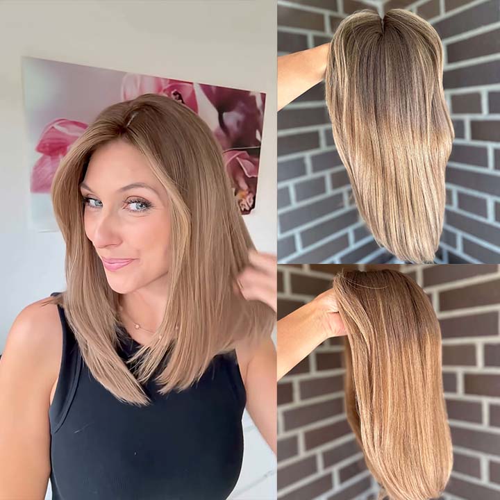 Natural Human Hair Topper - Silk Top Base Hair Topper - Straight Hair Natural and Seemless
