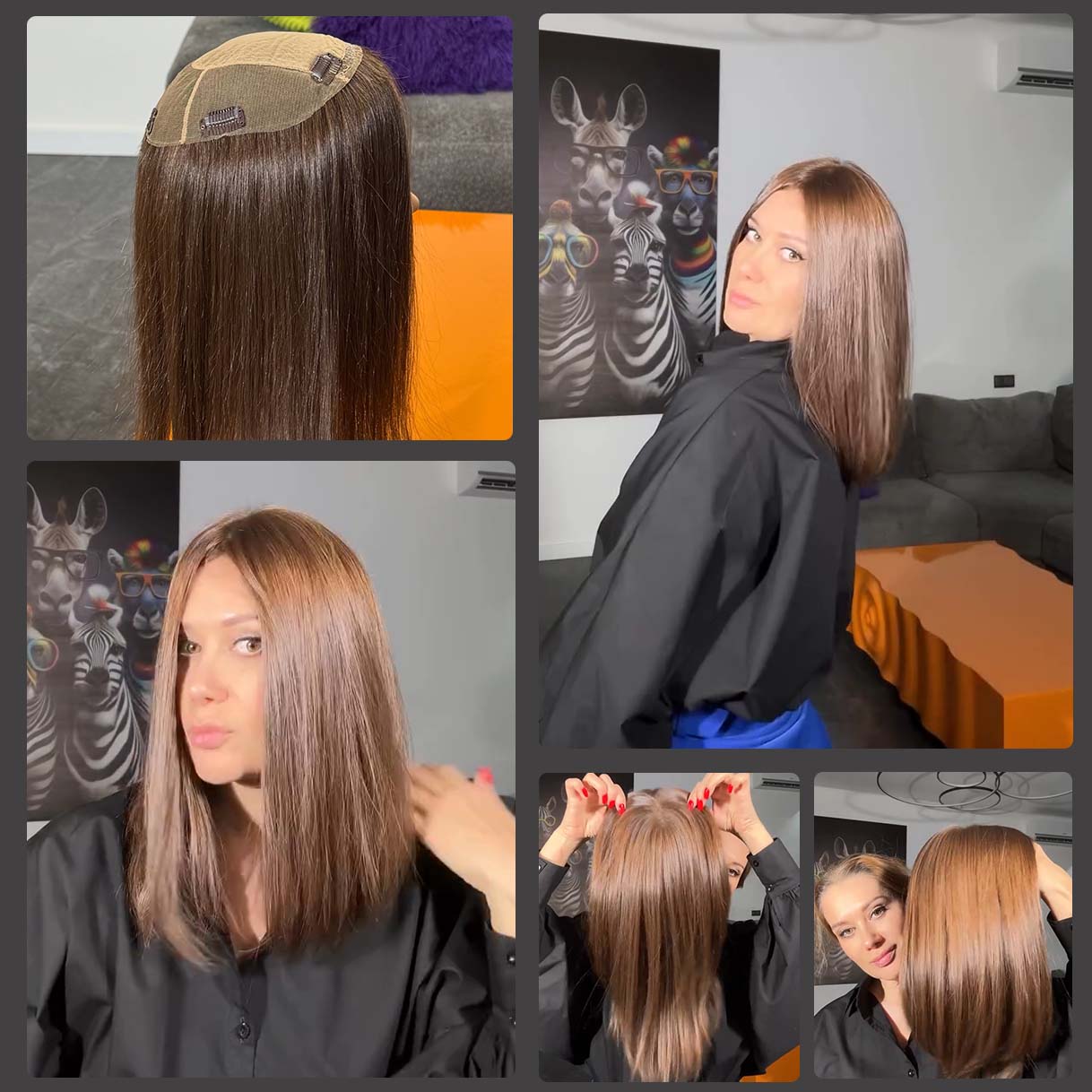 Natural Human Hair Topper - Silk Top Base Hair Topper - Straight Hair Natural and Seemless
